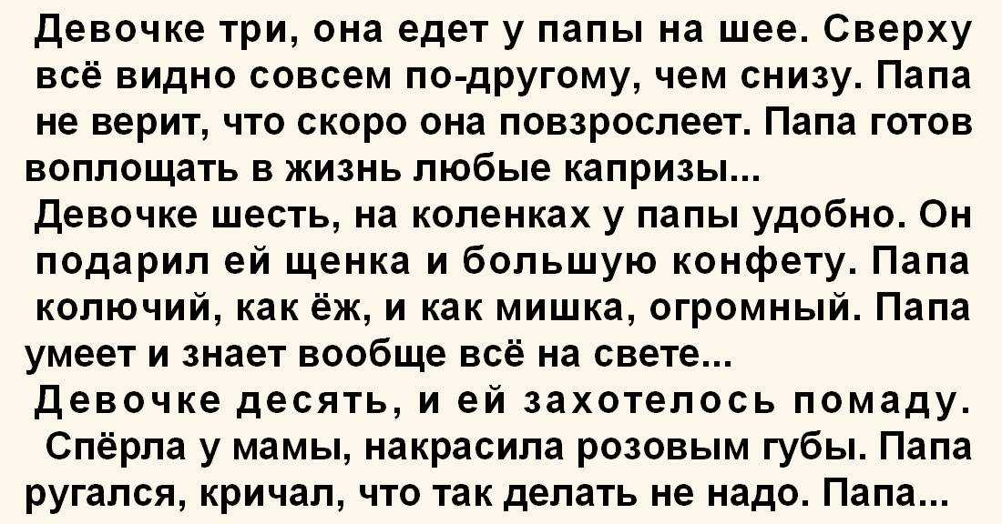 Он так гордился своей маленькой девочкой. Это был ее самый первый день в школе. Он шел с ней в школу в тот день, И всю дорогу держала его за руку. Шли вместе тихо и грустно, Маленькая девочка и ее любящий папа. В школу, которую вел ее отец, Но он чуть не заплакал, когда она сказала: . «Папа, папа, пожалуйста, не уходи. Не оставляй меня здесь совсем одну. Я буду скучать по тебе, если ты уйдешь, И я мог бы нуждаться в тебе; ты не можешь остаться?» «Доченька, пожалуйста, не плачь.