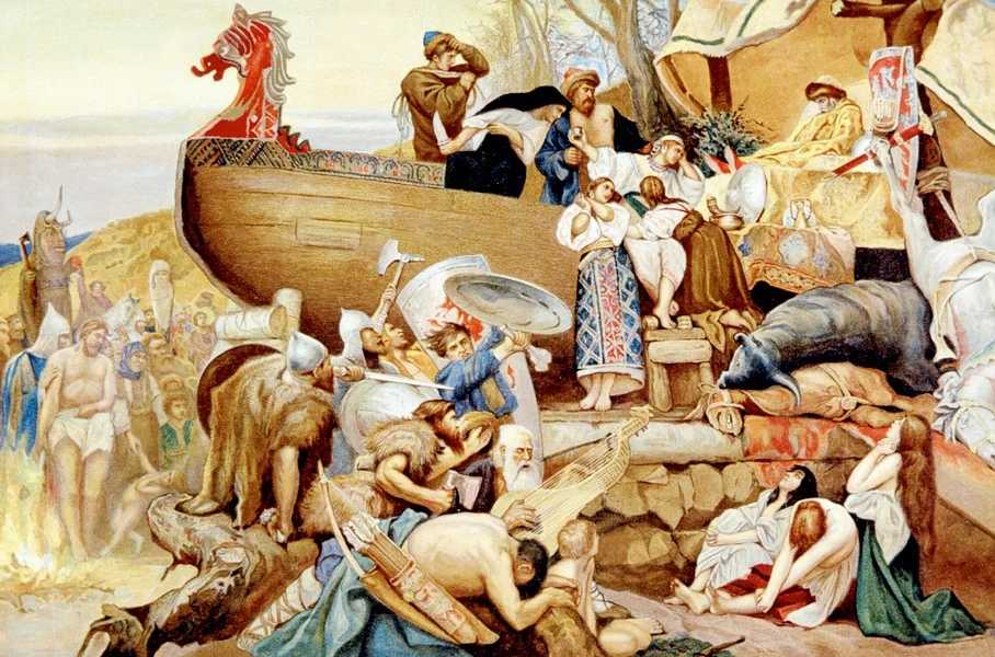 Ладья — это один из основных элементов погребального обряда — как у скандинавов, так и у славян. И древляне никак не могут об этом не знать. Прибыв в Киев, они сообщают Ольге, что ее супруг Игорь убит из-за своей жадности, и предлагают выйти за их князя Мала. Ольга разговаривает с ними вполне любезно, Но спать отправляет их не на постоялый двор. Она говорит вот что: