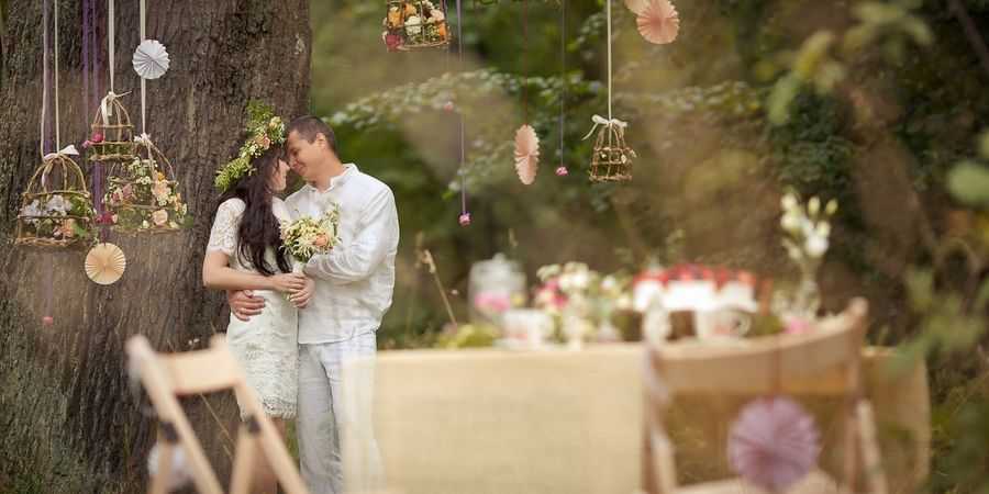 Идеально будет провести такое торжество на природе, в деревне или за городом. Все должно быть просто, естественно и без дорогих украшений.