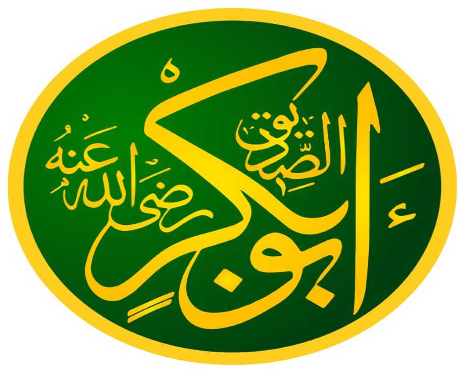 Каллиграфическая надпись на арабском языке: «Абу Бакр ас-Сиддик, да будет доволен им Аллах»
