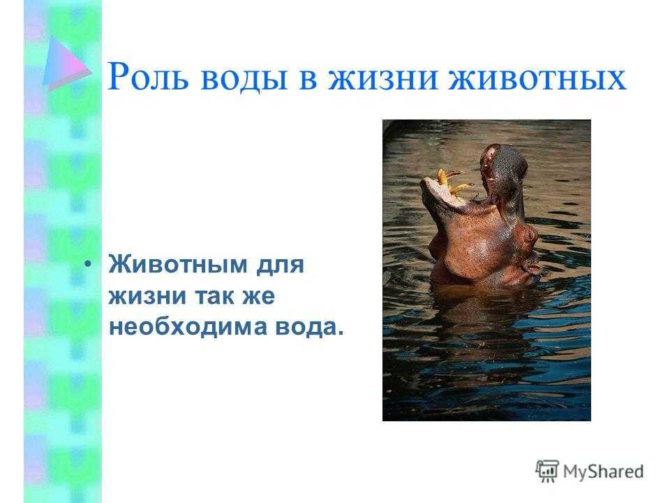 Роль воды в жизни животных Животным для жизни так же необходима вода.