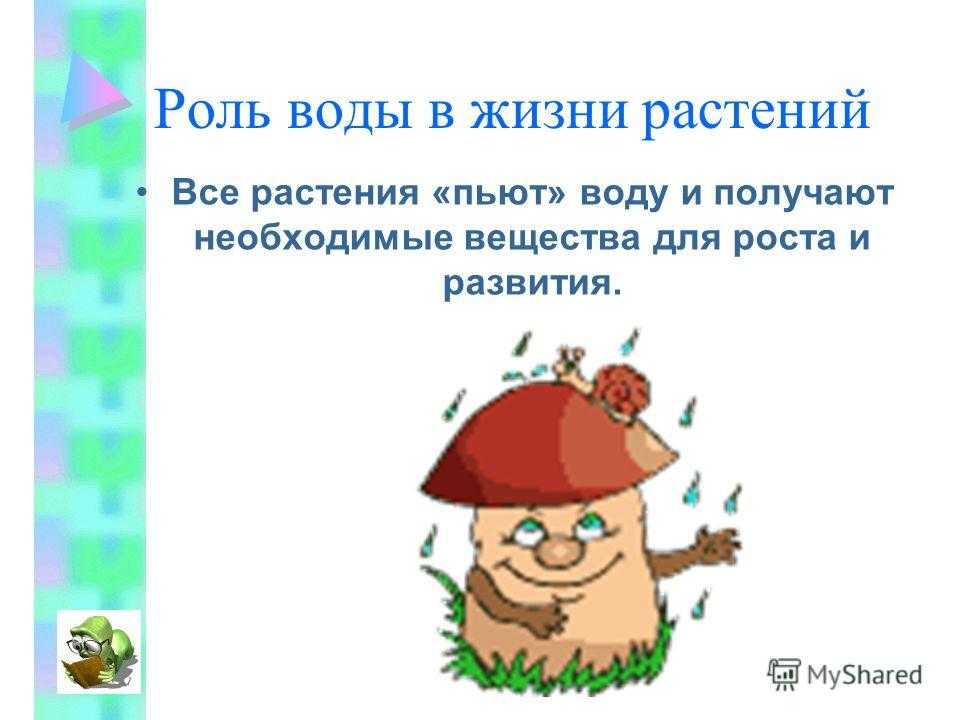 Роль воды в жизни растений Все растения «пьют» воду и получают необходимые вещества для роста и развития.