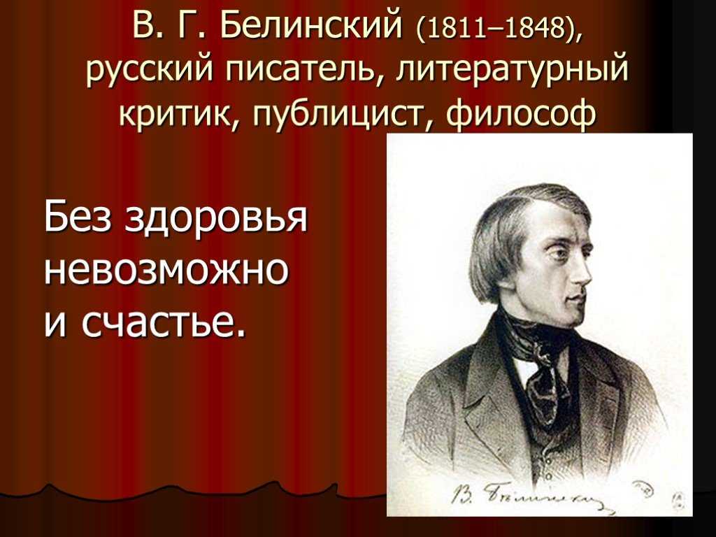 Без здоровья невозможно и счастье. Виссарион Белинский