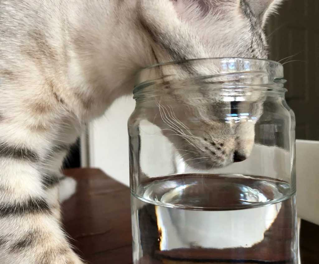 Вода в банке кажется котенку гораздо вкуснее воды в миске