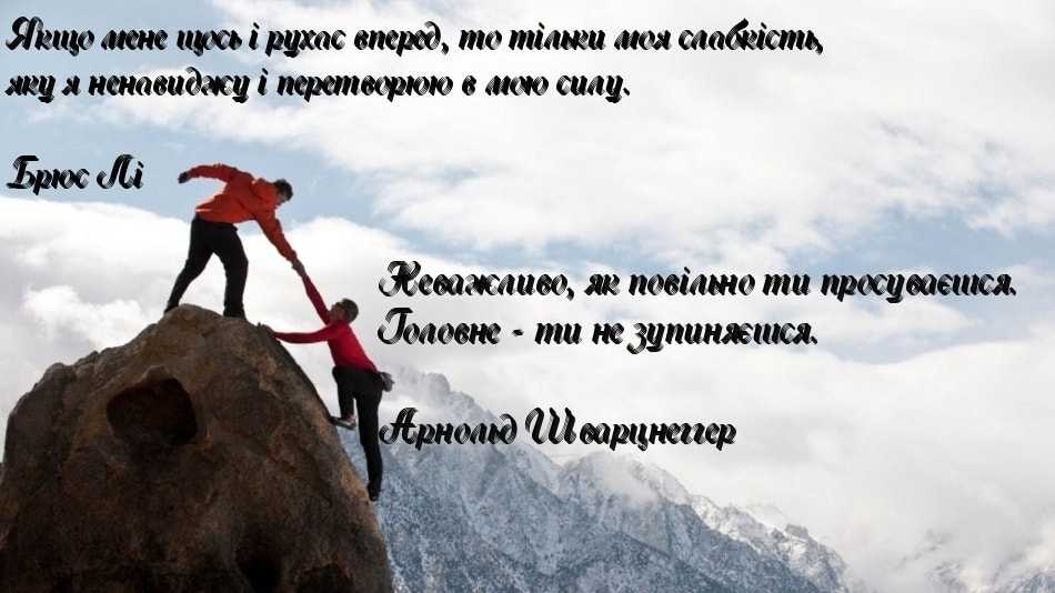 Мотиваційна цитата, якщо воно вміло та вдало підібрана, допоможе вам досягнути не лише глобальних цілей. Часом нам потрібний привід, щоб піднятися з ліжка, піти на роботу, піти з коханими чи дітьми на прогулянку, зайнятися спортом чи улюбленим хобі.