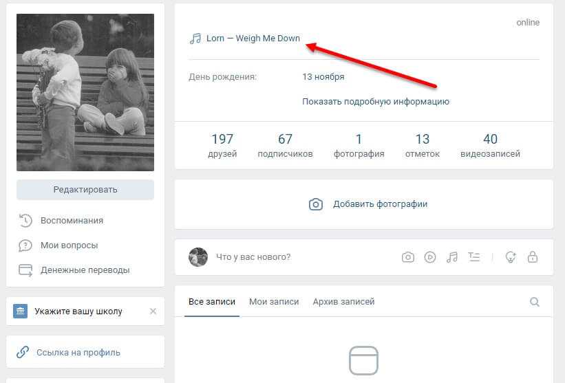 Отображается музыка в статусе в виде ссылки, которая обладает разным функционалом в зависимости от того, кем используется. Владелец страницы, нажавший на личный статус, попадет в меню редактирования текстового сообщения (появится шанс подправить название исполнителя или трека, а вместе с тем – добавить эмодзи). Гостей же ждет автоматический переход на страницу с музыкой, опубликованной в VK, и автоматическое воспроизведение транслируемого трека.