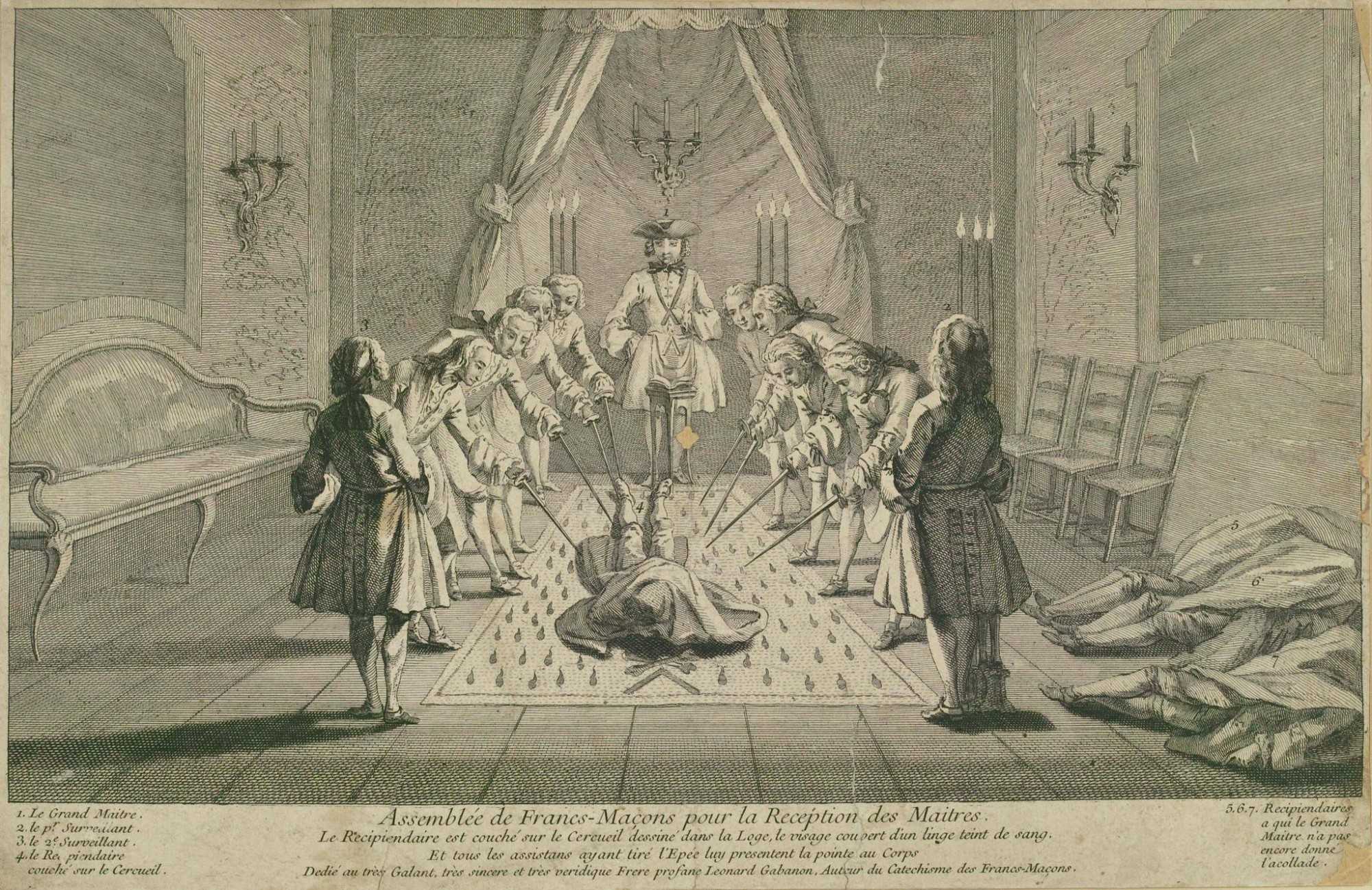 Посвящение в масоны. Гравюра Жака-Филиппа Леба, 1733 год.