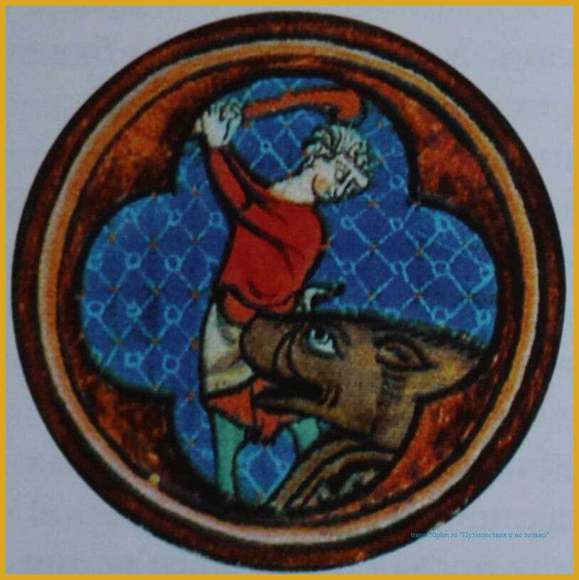 «Жил человек. С было у него пшеничное поле, на которое вдруг повадились ходить кабаны. Человек вырыл яму поперек кабаньей тропы, прикрыл её ветвями и ушёл. Когда животные пришли снова, ветви надломились, и их вожак упал в яму. Пришел хозяин с ярмом и принялся сверху бить кабана, осыпая проклятьями. И так увлекся, что не заметил, как оступился и тоже свалился в яму. Теперь уже кабан набросился на него и стал терзать своими клыками. И чем больше взывал человек о пощаде, тем злее становился кабан…»